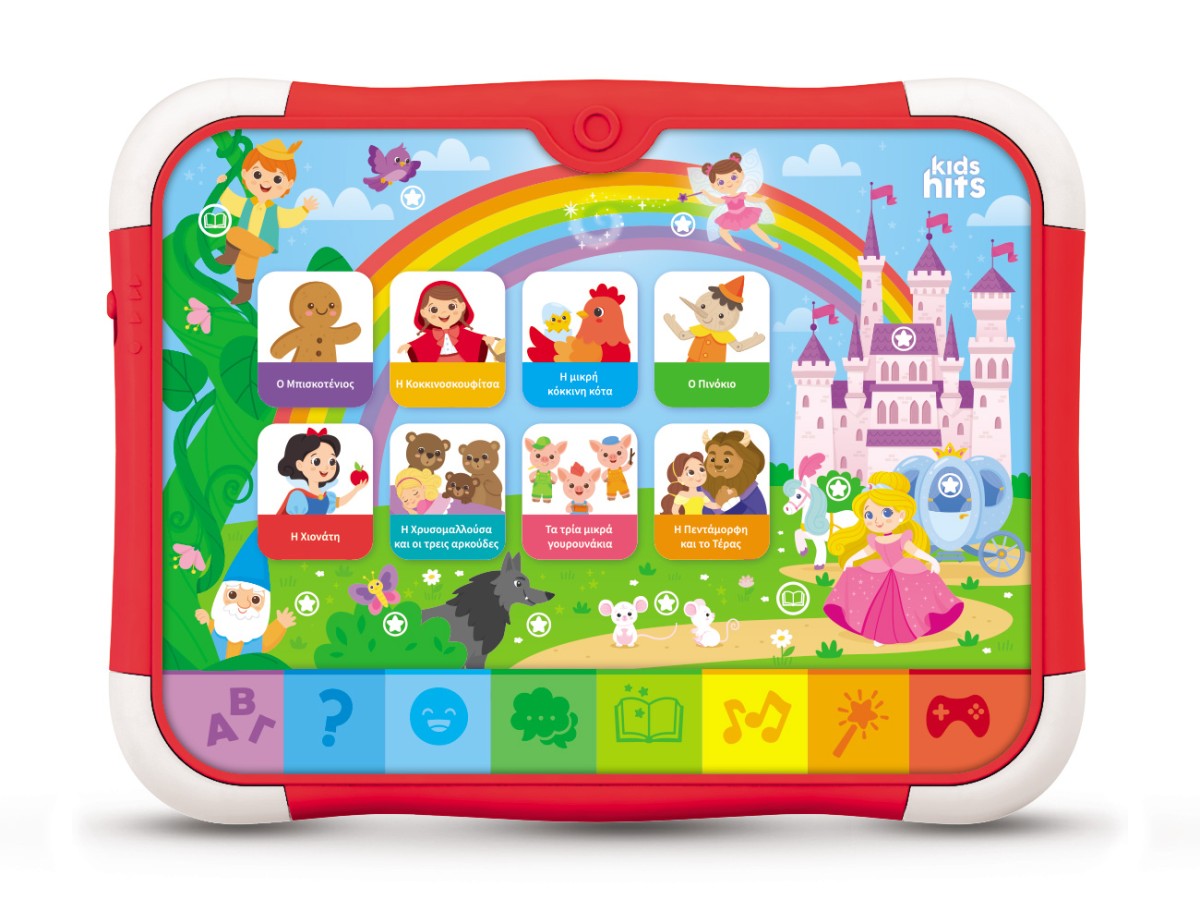 Ανακαλύψτε τις μοναδικές αφηγήσεις του Tablet Κλασικά Παραμύθια! Με αυτό το διαδραστικό παιχνίδι το παιδί γνωρίζει τους χαρακτήρες κλασικών και αγαπημένων παραμυθιών στα ελληνικά και διασκεδάζει δοκιμάζοντας τις γνώσεις του μέσα από 2 έξυπνα κουίζ. Οι αφηγήσεις των παραμυθιών, τα λαμπερά φωτάκια και τα χαρούμενα τραγούδια στα Ελληνικά συνθέτουν ένα εκπαιδευτικό περιβάλλον που διατηρεί αμείωτο το ενδιαφέρον του παιδιού.